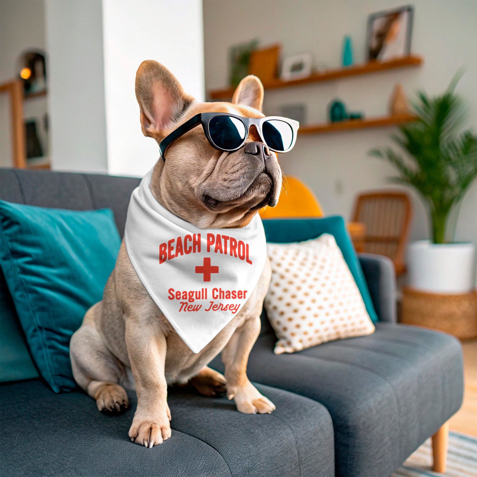 Catch those vibes with Beach Patrol, a sunny, lifeguard inspired bandana that says your pup’s on duty for beach days, seaside strolls, and sandcastle shenanigans. Lightweight, quick-dry, and wave ready, it’s summer style in every stitch.