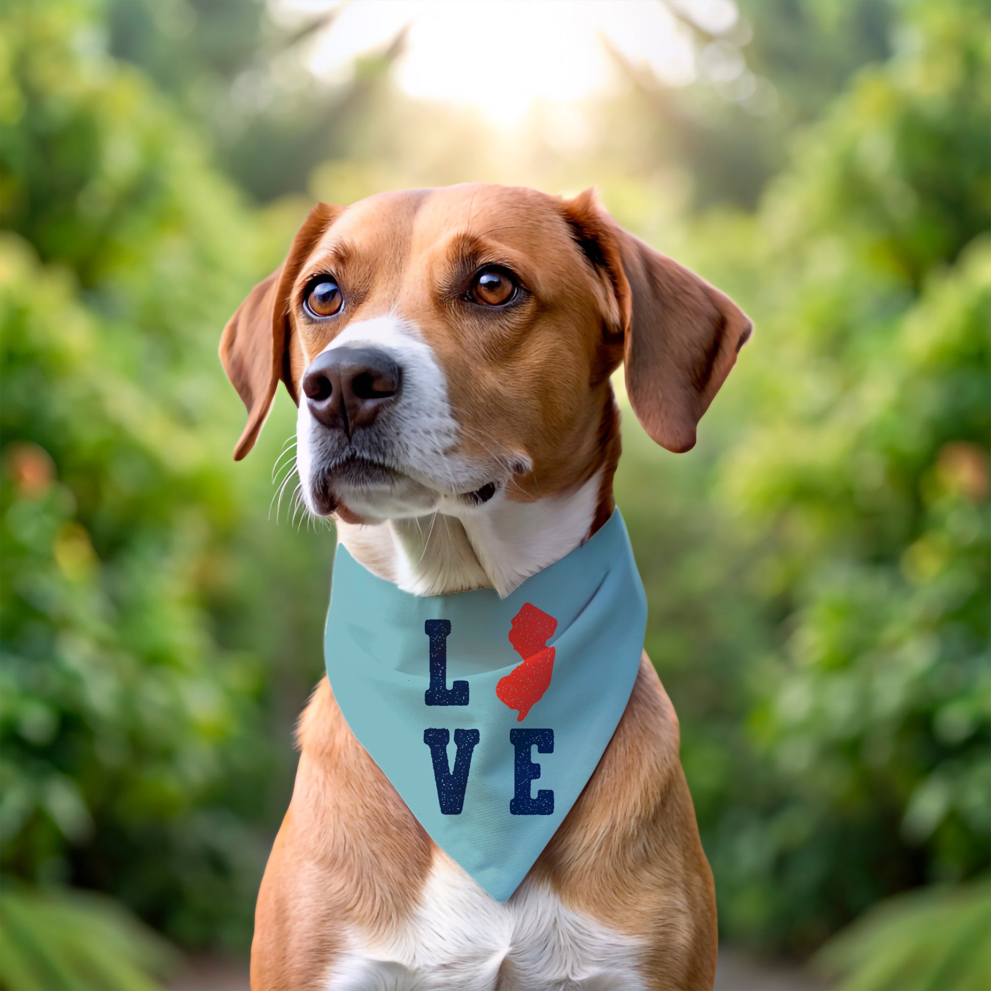 Show off your Garden State pride with Love NJ, featuring bold typography paired with the iconic New Jersey state silhouette. This sleek color combo is perfect for pups who like a classic, standout look that’s all about local love.